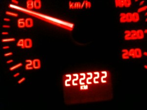 En, geloof het of niet, terwijl de premier mij opriep om de crisis te lijf te gaan door een nieuw bankstel aan te schaffen of mijn auto in te ruilen… bereikte mijn kilometerteller de stand van 222.222 kilometer!